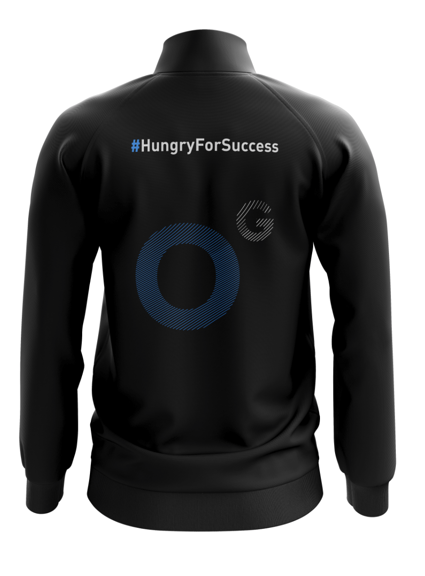 Chaqueta negra O2 Gaming. Tallas disponibles: S, M, L, XL y XXL. Indica la talla al finalizar el pago en observaciones.